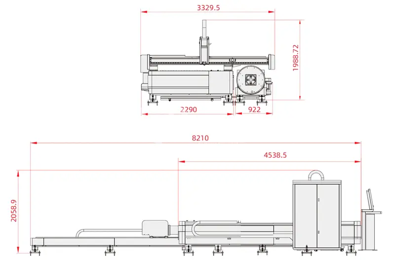 | Размер оборудования (Д×Ш×В) | 8210×3150×2100 мм |