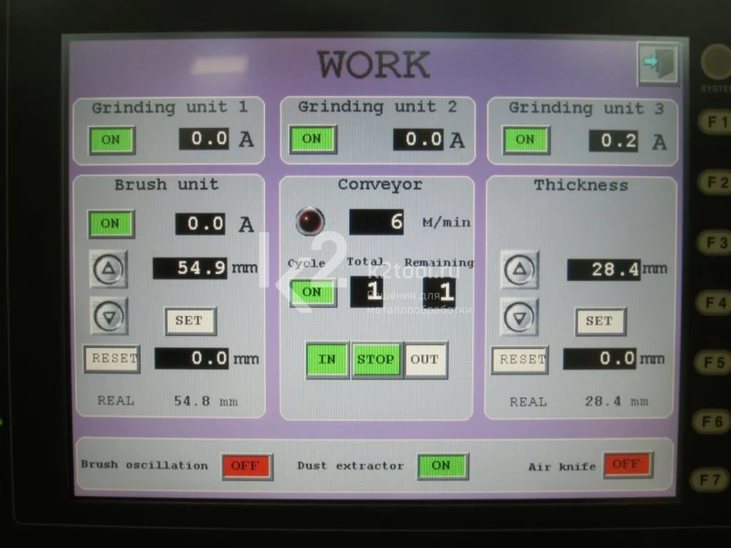 - Регулировка под различную толщину заготовки осуществляется за счет перемещения абразивных станций, при этом конвейерная лента всегда находится на одном уровне.