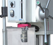- Легкая смена инструмента посредством встроенного выталкивателя: нажмите на выталкиватель и поверните рукоятку подачи пиноли вверх — оправка выпадет из конуса шпинделя.