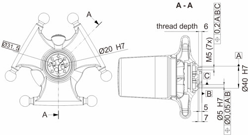 - Фланец подходит для простого и быстрого монтажа захватов различных функций и размеров.