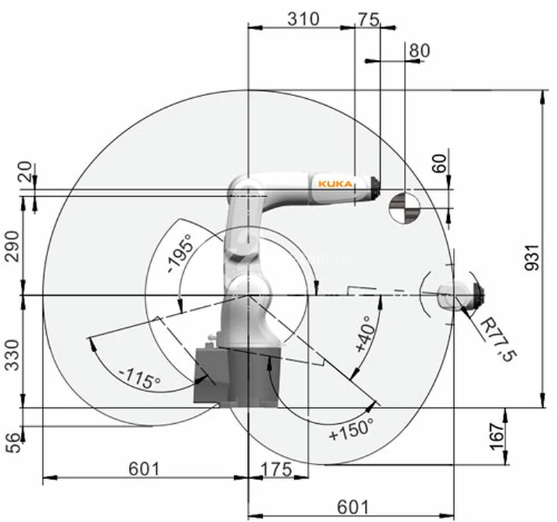 | Макс. радиус действия | 601 мм |