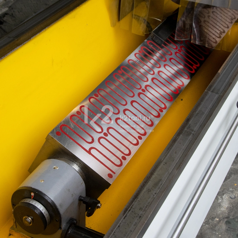 - Шлифовальная головка перемещается вдоль лезвия под заданным углом влево и вправо с равномерной скоростью.
