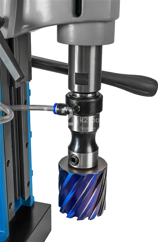 - Износостойкие направляющие «двойной ласточкин хвост» позволяют регулировать положение привода для работы длинными сверлами или сверления ниже базовой поверхности станка.