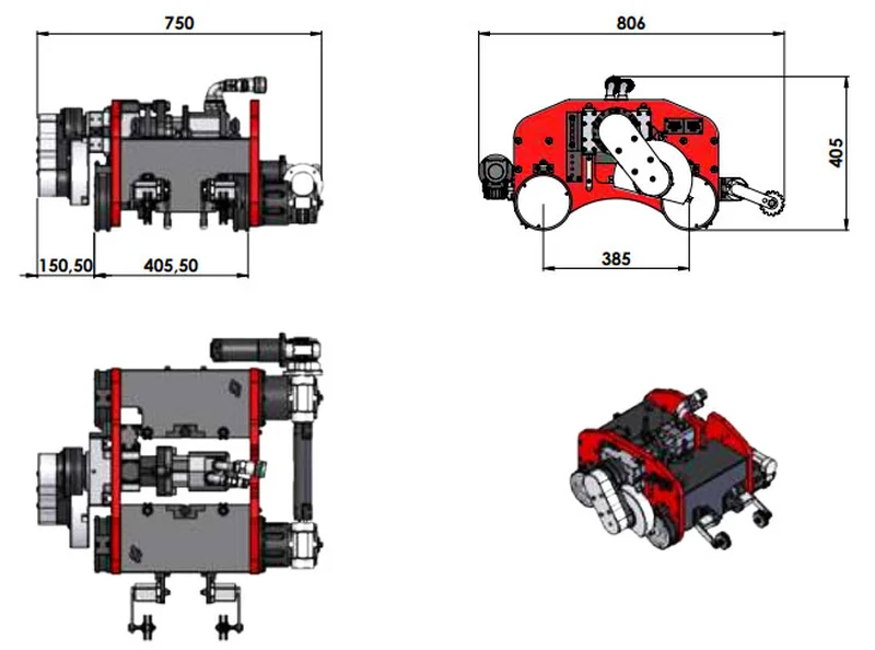 - Система перемещения использует высокопрочные резиновые колеса, обеспечивающие прочное сцепление с поверхностью и, следовательно, позволяют устройству работать в любом положении.