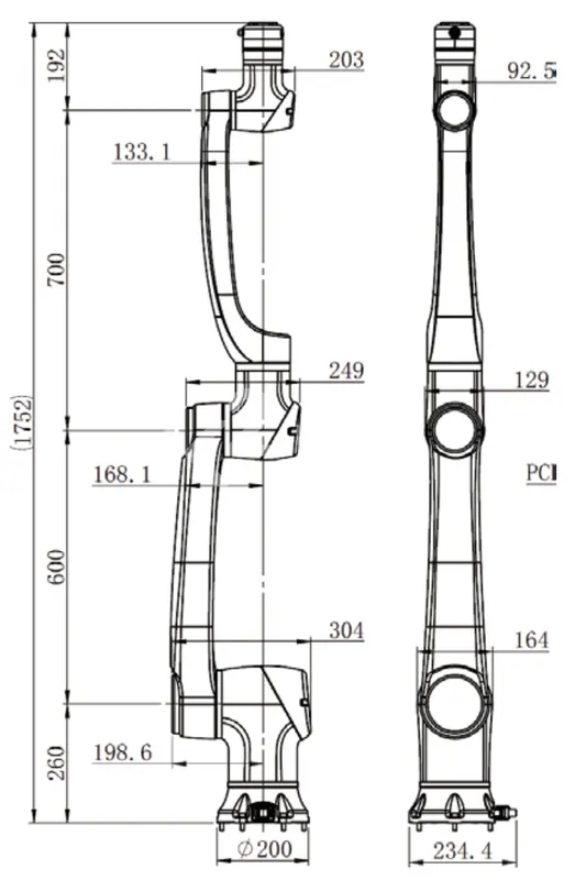 - Радиус рабочей зоны: 1300 мм.