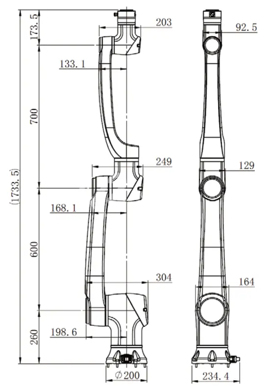 - Радиус рабочей зоны: 1300 мм.