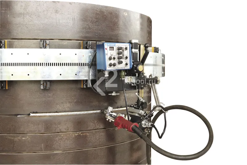 - Блок управления, позволяющий регулировать направление и скорость перемещения каретки, силу сварочного тока, напряжение на дуге, скорость подачи проволоки, частоту и амплитуду осцилляций горелки и время задержки осцилляций горелки в крайних точках.