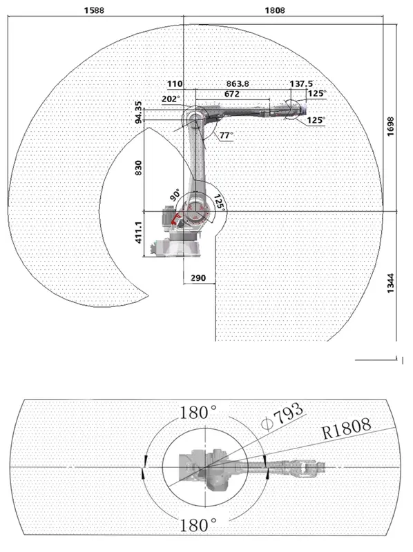 - Промышленный робот Макс. досягаемость 1808 мм Грузоподъемность 25 кг Степень подвижности 6 осей Повторяемость ±0,08 мм Напряжение 3Ф, 380 В ±15 %, 50 Гц Класс защиты IP54 / запястье IP67 Масса 198 кг Способ крепления Пол, стена, потолок Потребляемая мощность (средняя) 3 кВт Температура эксплуатации 0–45 °C Относительная влажность 20–80 % (без конденсата) Ось Диапазон движения по оси Макс. скорость движения по оси J1 ±180° 175°/с J2 −125°…+90° 162°/с J3 −77°…+202° 173°/с J4 ±180° 417°/с J5 ±125° 336°/с J6 ±360° 456°/с Лазерная голова Максимальная мощность лазера 3 кВт Форма интерфейса QBH Фокусное расстояние 200 мм Диапазон сканирования X: 0–5 мм; Y: 0–5 мм Максимальная частота 400 Гц Масса 2 кг Лазерный источник Мощность 1,5 кВт 2 кВт 3 кВт Входное напряжение 1Ф, 220 В переменного тока 3Ф, 380 В переменного тока Потребляемая мощность 7,3 кВт 8,1 кВт 12 кВт Функции Сварка Обрабатываемые материалы Сталь, нержавеющая сталь, алюминий Толщина материала Сталь 1–2 мм 1–3 мм 1–4 мм Нержавеющая сталь 1–3 мм 1–4 мм 1–5 мм Алюминий 1–2 мм 1–3 мм 1–4 мм Диапазон скорости 0–120 мм/с Блок охлаждения Встроенный Внешний Длина волны 1070±10 нм Податчик проволоки Стандартный четырехроликовый Диаметр проволоки 0,8 / 1,0 / 1,2 / 1,6 мм
