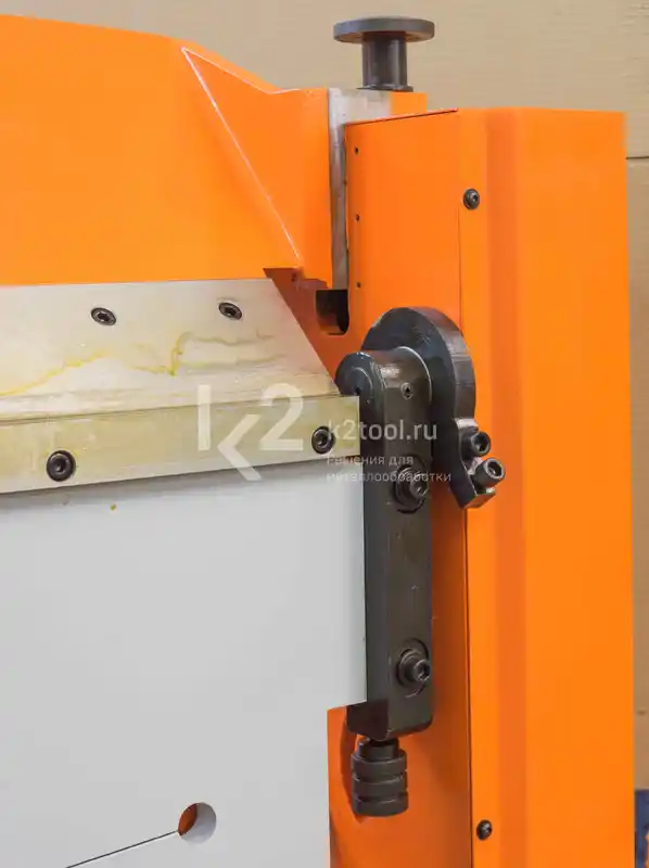 - Наличие ножного привода и механизм раскрытия верхней балки после загиба листа.