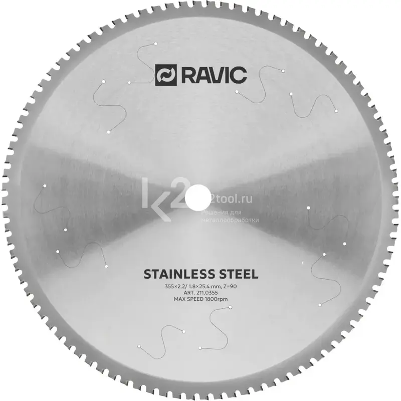 K2 — Диск пильный TCT по нержавеющей стали Ravic, 355×25,4 мм, Z=90, арт. 211.0355 купить в Санкт-Петербурге, Москве по ценам производителя. Технические характеристики. ✔ Гарантия и сервис. ✔ Лизинг.