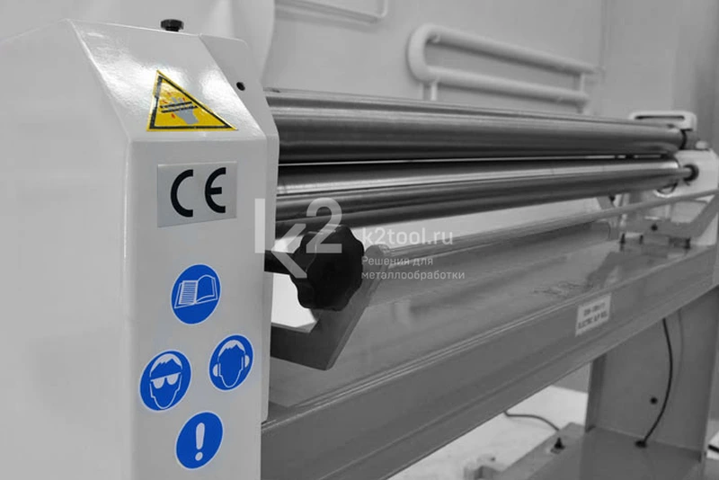 - Верхний валок оснащен поворотно-откидным устройством, зажимом эксцентрикового типа и вращается в обе стороны.