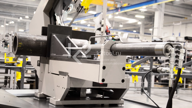 - Оснащен тисками с гидравлическими цилиндрами.