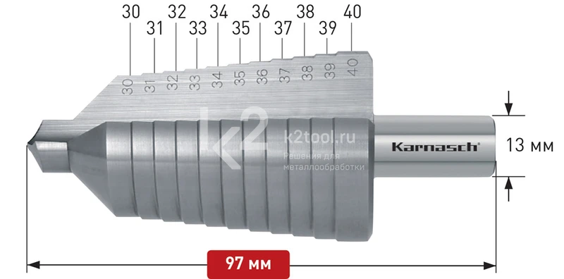 Купить ступенчатое сверло Ø 30-40 мм, Karnasch, арт. 21.3014 из наличия от 15286 ₽. Бесплатная доставка по СПб, МСК и РФ в день заказа, гарантия от 1 года, официальный сервис. Поможем выбрать, звоните: 8 962 611-24-19.