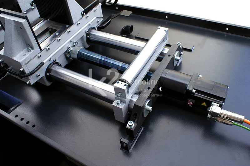 - Трехсторонние твердосплавные направляющие и шкивы большого диаметра повышают стойкость пильного полотна и точность пиления.