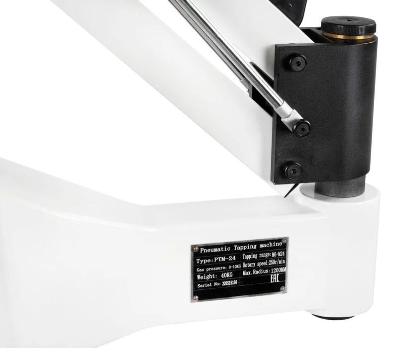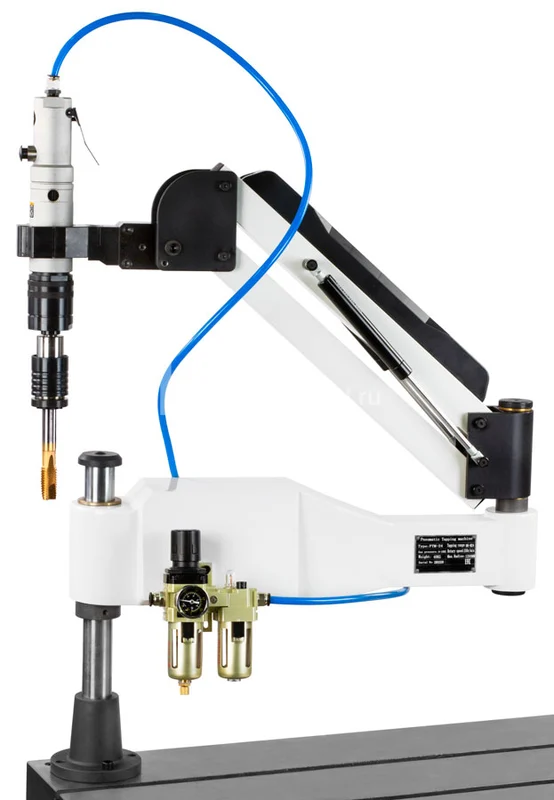 - и преимущества Нарезание резьбы различного размера метчиками разных стандартов (метрических, дюймовых) и с разными хвостовиками ISO (ГОСТ), JIS, DIN371, DIN 376. Обеспечивает соосность при нарезании резьбы. Нарезание как правой так и левой резьбы в разных плоскостях за счет специального поворотного устройства, входящего в комплект поставки. Сокращение времени нарезки резьбы в 5-10 раз! Исключает поломку метчиков. Широкий охват рабочей зоны на 1200 мм в одну сторону или 2400 мм в обе стороны. Оснащен поворотной консолью, которая обеспечивает разные пространственные положения привода для нарезания резьбы: горизонтальное, вертикальное и под любым другим углом.