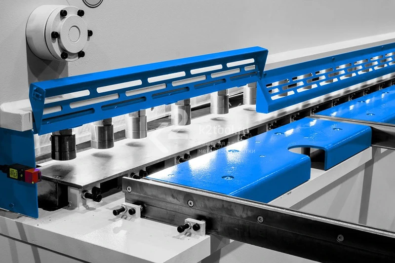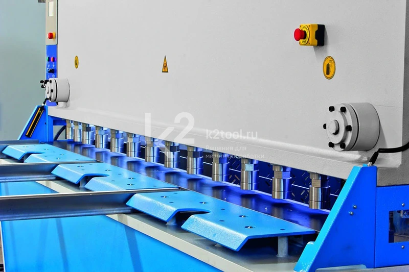 | Модель | Рабочая длина | Толщина стали/нерж. стали | Угол среза | Кол-во ходов в минуту | Кол-во держателей листа | Мощность двигателя | Ход заднего упора | Емкость масляного бака | Регулировка лезвия | Скорость перемещения заднего упора | Кол-во поддерживающих штанг | Высота стола | Расстояние между колоннами | Габариты | Масса |