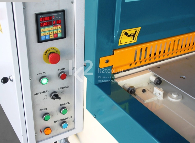- Ручной задний упор с ходом 600 мм.