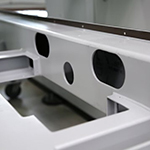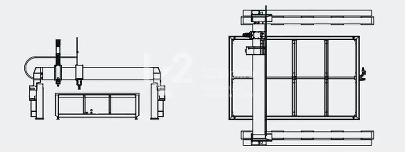 Установка OPAL имеет конструкцию портального типа. Установка выполнена из стальных замкнутых профилей, обеспечивающих высокую жесткость конструкции. Направляющие элементы защищены от вредного воздействия воды специальными сильфонами или алюминиевыми кожухами. Относительно низкий вес портала и специально отшлифованные рейки обеспечивают установке Opal превосходную динамику, а высокоточные приводы — точное позиционирование.