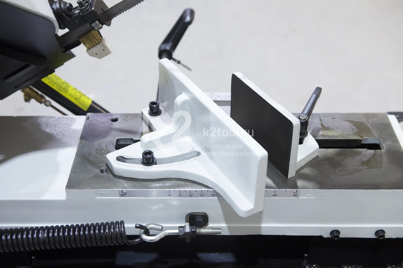 - В зависимости от комплектации возможен поворот губок тисков или возможность поворота рамы пилы.