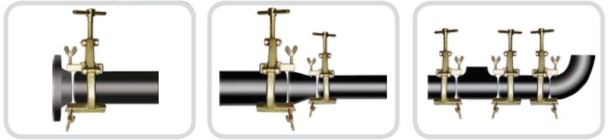- Предназначен для центрирования труб с возможностью сварки всей окружности трубы с помощью зажима.
