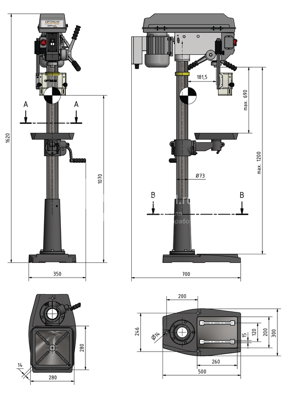 | Макс. расстояние от шпинделя до основания | 1200 мм |