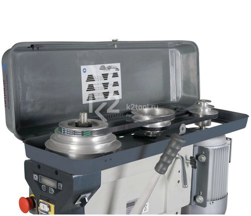 - Защитный кожух приводного ремня оснащен предохранительным выключателем. В открытом положении сверлильный станок не включится.