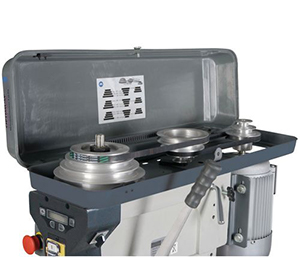 - Оснащен клиноременным приводом, где применены алюминиевые шкивы и зубчатые качественные ремни немецкой фирмы GATES. Такая конструкция наиболее точно передает вращение от электродвигателя к шпинделю станка, не допуская моментов проскальзывания ремня или пробуксовки.