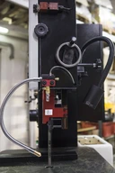 - Станок оснащен электросваркой 2,4 кВА, гильотиной, шлифовкой для ремонта полотна.