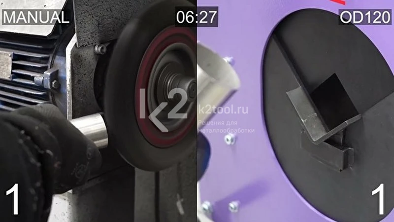 - Проволочная щетка вращается по всей форме трубы, обрабатывая кромки с внутренней и внешней стороны всего лишь за несколько секунд.