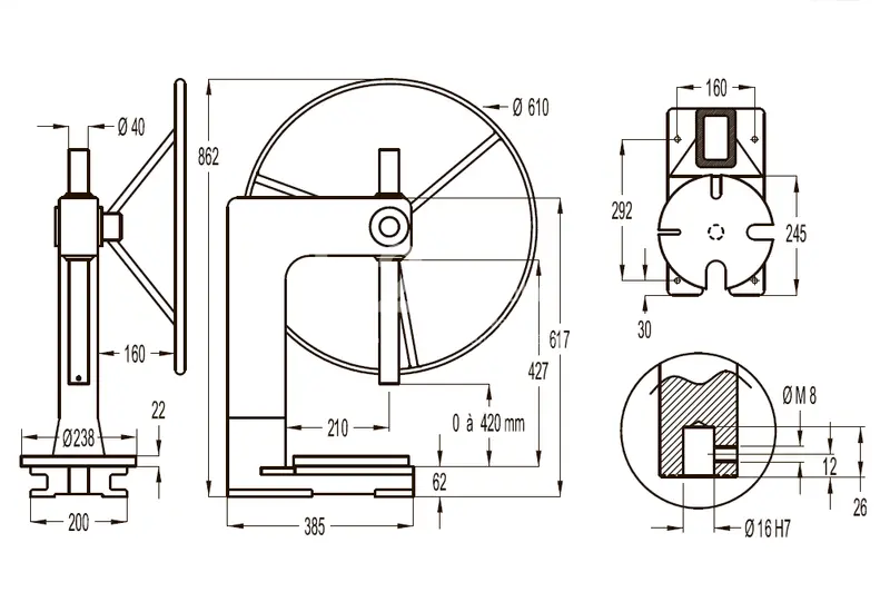 - Опора основания и прижимная головка изготовлены из чугуна FGL 250, что обеспечивает прочность и жесткость.