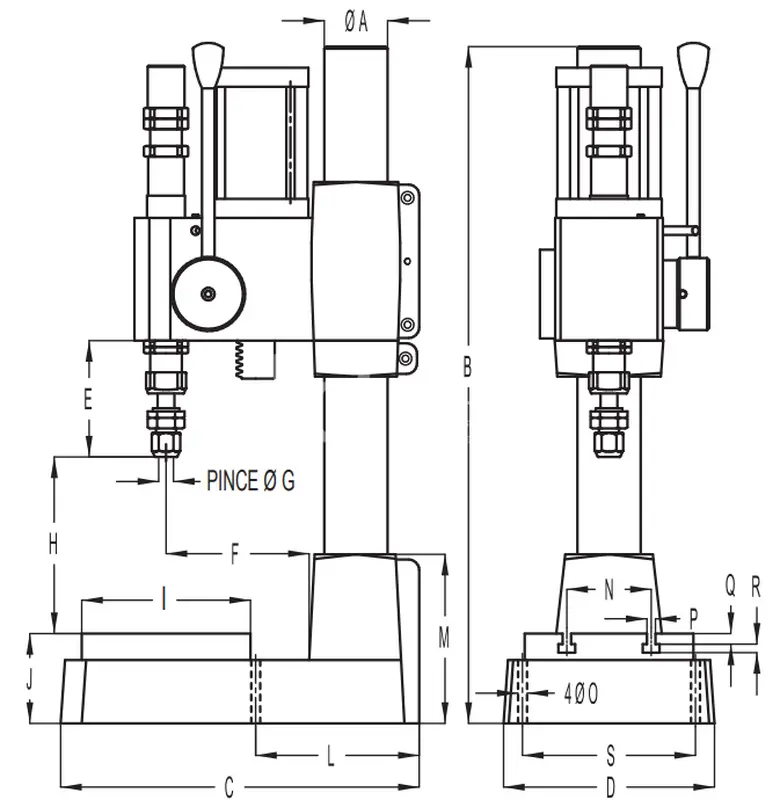 - Опора основания и прижимная головка изготовлены из чугуна FGL 250.