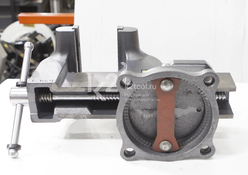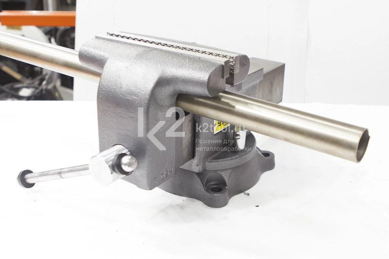 - Закрытый ходовой винт тисков защищен от попадания металлической стружки и опилок.