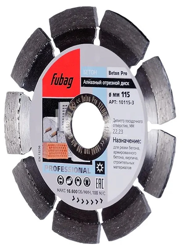 Купить алмазный отрезной диск по бетону Fubag Beton Pro D115 мм / 22,2 мм по низкой цене. Бесплатная доставка по СПб, МСК и РФ в день заказа, гарантия от 1 года, официальный сервис. Поможем выбрать, звоните: 8 962 611-24-19.