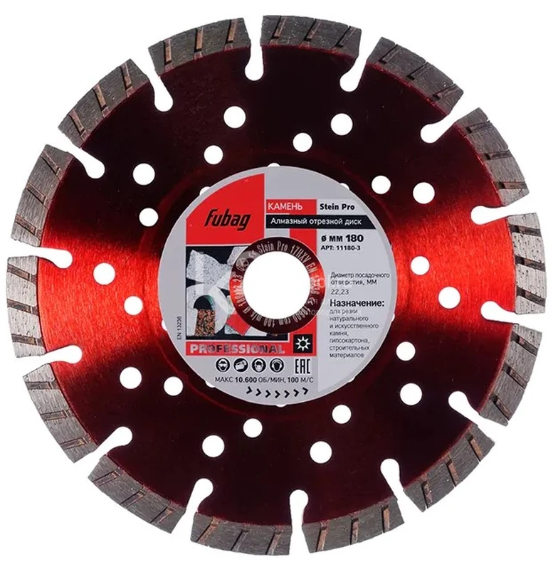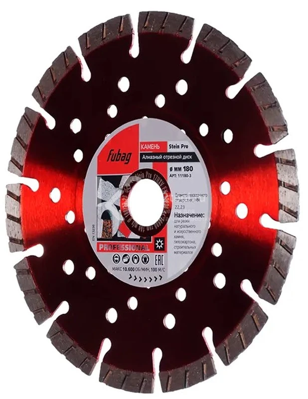 Купить алмазный отрезной диск по камню Fubag Stein Pro D180 мм / 22,2 мм по низкой цене. Бесплатная доставка по СПб, МСК и РФ в день заказа, гарантия от 1 года, официальный сервис. Поможем выбрать, звоните: 8 962 611-24-19.