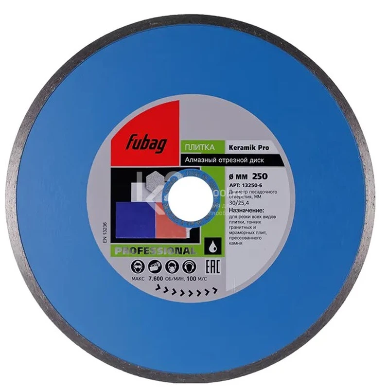 Купить алмазный отрезной диск по керамике Fubag Keramik Pro D250 мм / 30-25,4 мм по низкой цене. Бесплатная доставка по СПб, МСК и РФ в день заказа, гарантия от 1 года, официальный сервис. Поможем выбрать, звоните: 8 962 611-24-19.