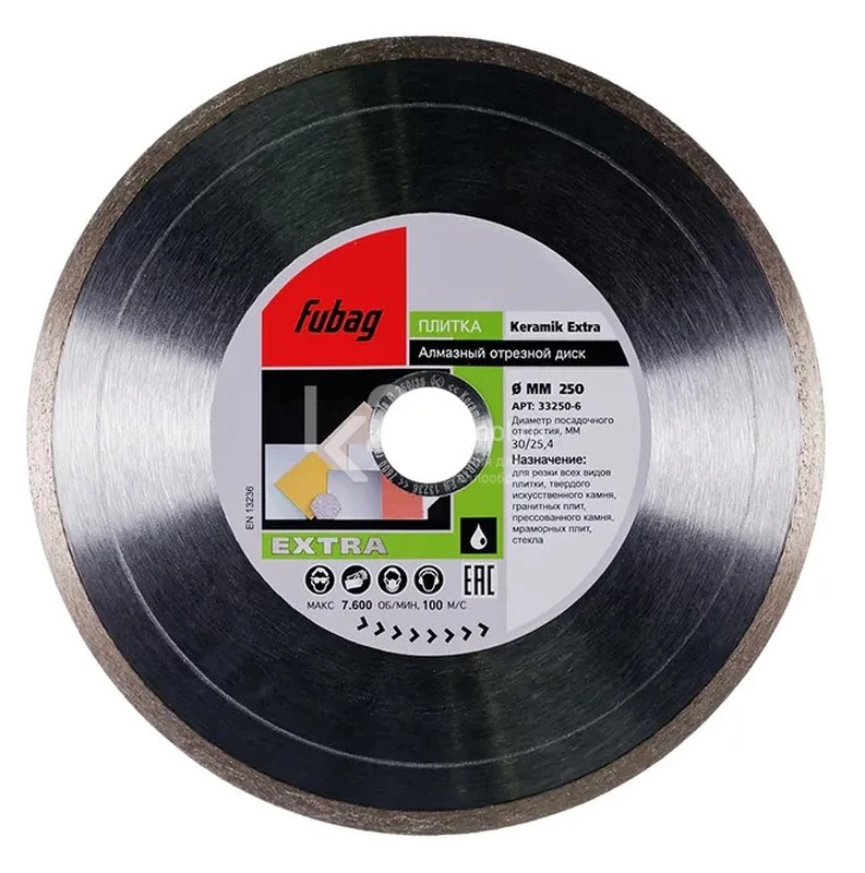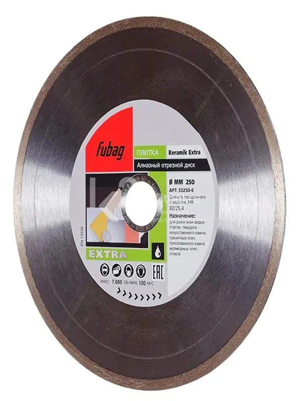 Купить алмазный отрезной диск по керамике Fubag Keramik Extra D250 мм / 30-25,4 мм по низкой цене. Бесплатная доставка по СПб, МСК и РФ в день заказа, гарантия от 1 года, официальный сервис. Поможем выбрать, звоните: 8 962 611-24-19.