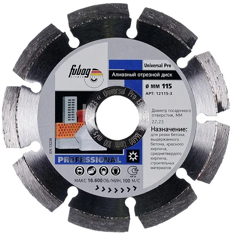 Купить алмазный отрезной диск Fubag Universal Pro D115 мм / 22,2 мм по низкой цене. Бесплатная доставка по СПб, МСК и РФ в день заказа, гарантия от 1 года, официальный сервис. Поможем выбрать, звоните: 8 962 611-24-19.