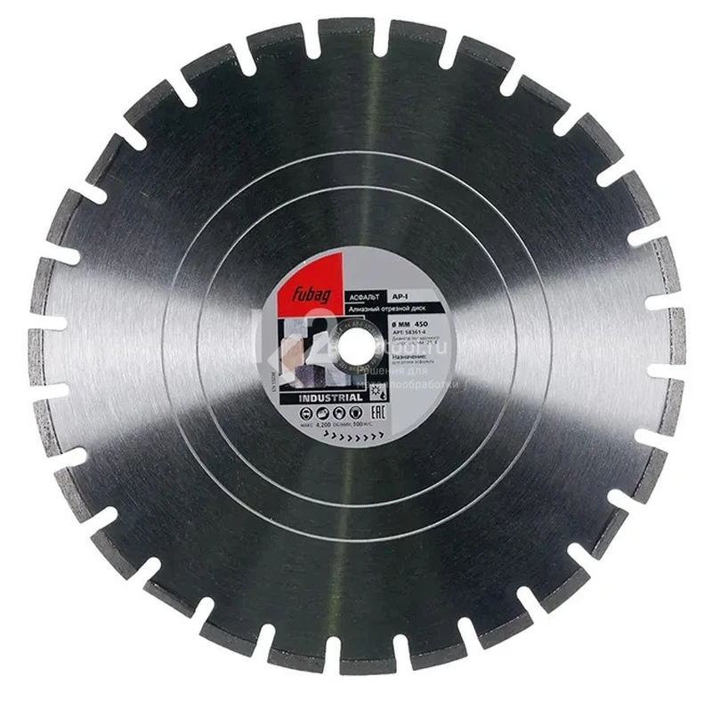 Купить алмазный отрезной диск по асфальту Fubag AP-I D450 мм / 25,4 мм по низкой цене. Бесплатная доставка по СПб, МСК и РФ в день заказа, гарантия от 1 года, официальный сервис. Поможем выбрать, звоните: 8 962 611-24-19.