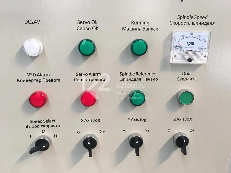 - Программируемый логический контроллер (PLC) проводит постоянный мониторинг всех элементов станка.