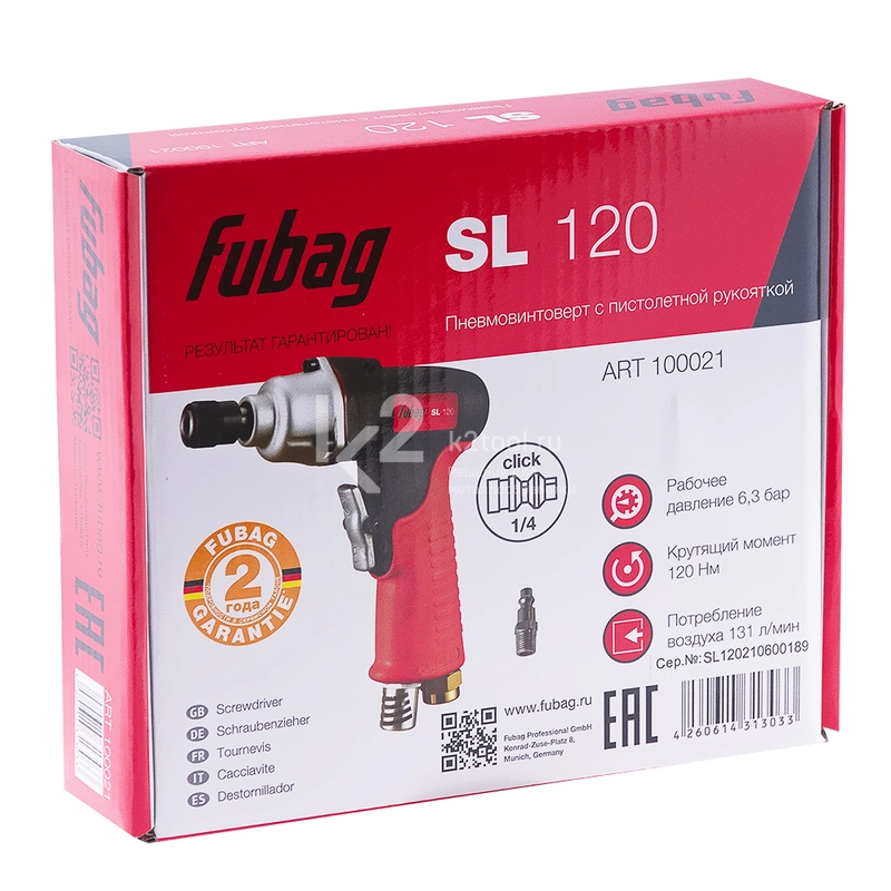 Купить пневмовинтоверт Fubag SL 120 по низкой цене. Бесплатная доставка по СПб, МСК и РФ в день заказа, гарантия от 1 года, официальный сервис. Поможем выбрать, звоните: 8 962 611-24-19.