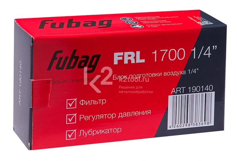 Купить блок подготовки воздуха Fubag FRL 1700 1/4 дюйма по низкой цене. Бесплатная доставка по СПб, МСК и РФ в день заказа, гарантия от 1 года, официальный сервис. Поможем выбрать, звоните: 8 962 611-24-19.