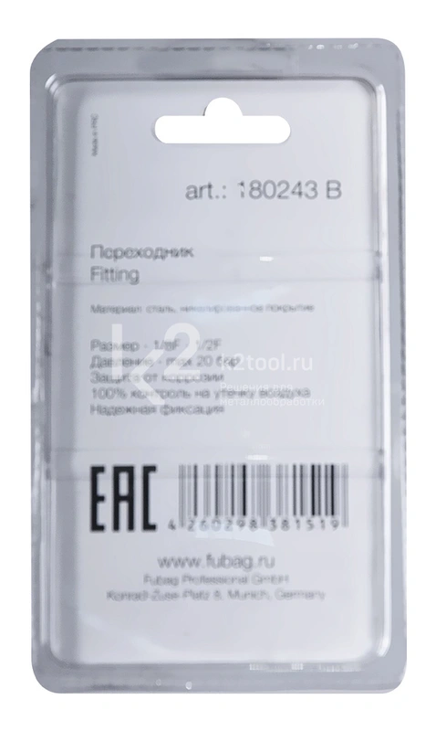 Купить переходник Fubag 1/8"F-1/2"F в блистере по низкой цене. Бесплатная доставка по СПб, МСК и РФ в день заказа, гарантия от 1 года, официальный сервис. Поможем выбрать, звоните: 8 962 611-24-19.