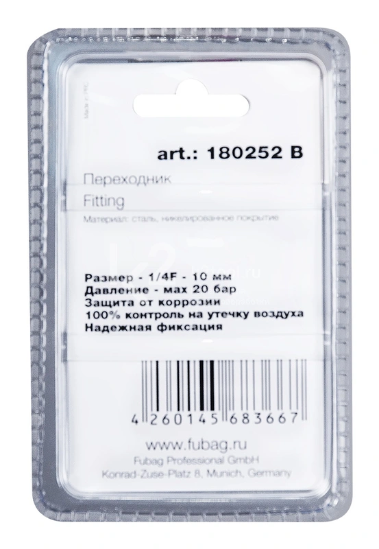 Купить переходник Fubag с 1/4"F на елочку 10 мм в блистере по низкой цене. Бесплатная доставка по СПб, МСК и РФ в день заказа, гарантия от 1 года, официальный сервис. Поможем выбрать, звоните: 8 962 611-24-19.