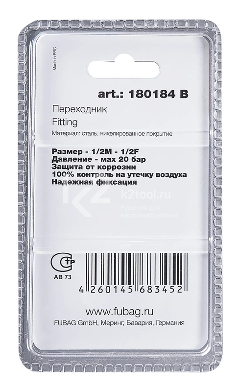 Купить переходник Fubag 1/2"M-1/2"F в блистере по низкой цене. Бесплатная доставка по СПб, МСК и РФ в день заказа, гарантия от 1 года, официальный сервис. Поможем выбрать, звоните: 8 962 611-24-19.