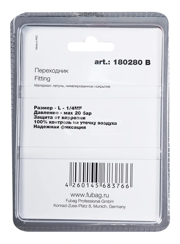 Купить переходник Fubag L 1/4"MF в блистере по низкой цене. Бесплатная доставка по СПб, МСК и РФ в день заказа, гарантия от 1 года, официальный сервис. Поможем выбрать, звоните: 8 962 611-24-19.