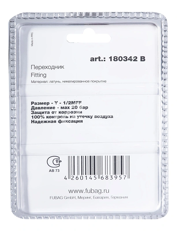 Купить переходник Fubag Y 1/2"MFF в блистере по низкой цене. Бесплатная доставка по СПб, МСК и РФ в день заказа, гарантия от 1 года, официальный сервис. Поможем выбрать, звоните: 8 962 611-24-19.