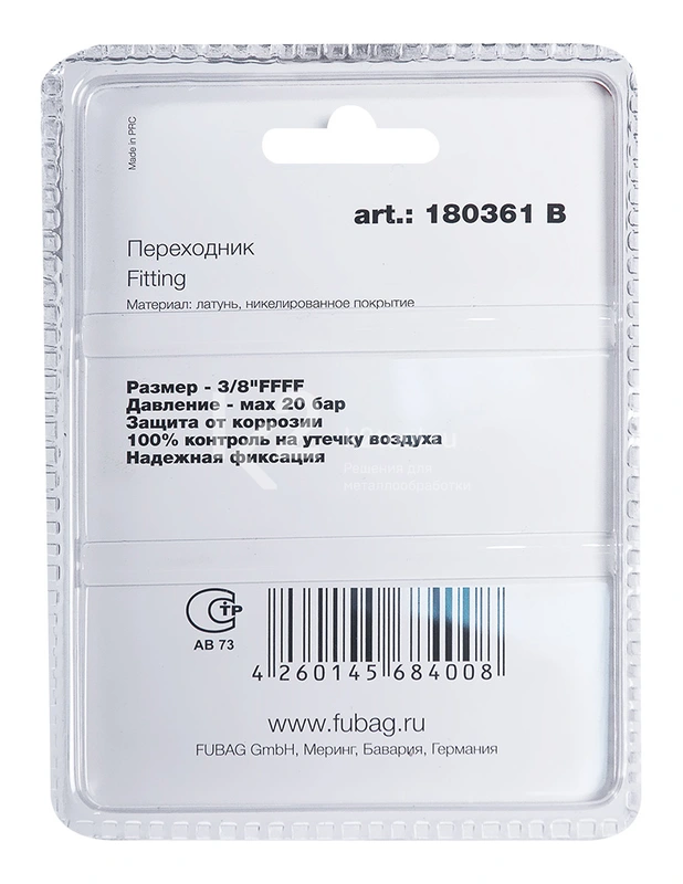 Купить переходник Fubag 3/8"FFFF в блистере по низкой цене. Бесплатная доставка по СПб, МСК и РФ в день заказа, гарантия от 1 года, официальный сервис. Поможем выбрать, звоните: 8 962 611-24-19.