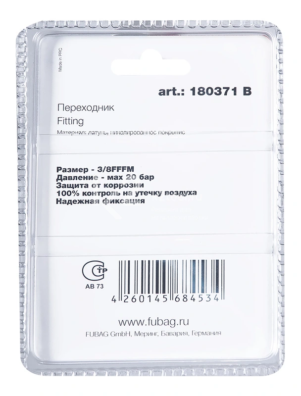 Купить переходник Fubag 3/8"FFFM в блистере по низкой цене. Бесплатная доставка по СПб, МСК и РФ в день заказа, гарантия от 1 года, официальный сервис. Поможем выбрать, звоните: 8 962 611-24-19.