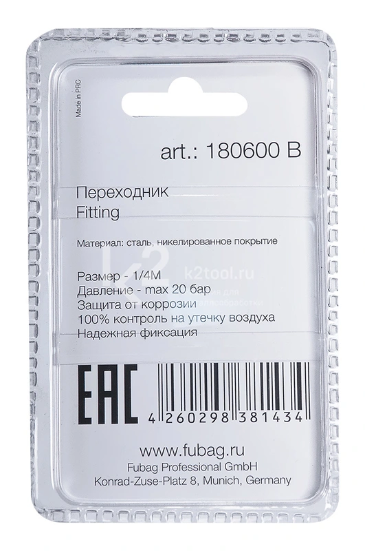 Купить переходник Fubag 1/4"M на байонет (штуцер) в блистере по низкой цене. Бесплатная доставка по СПб, МСК и РФ в день заказа, гарантия от 1 года, официальный сервис. Поможем выбрать, звоните: 8 962 611-24-19.