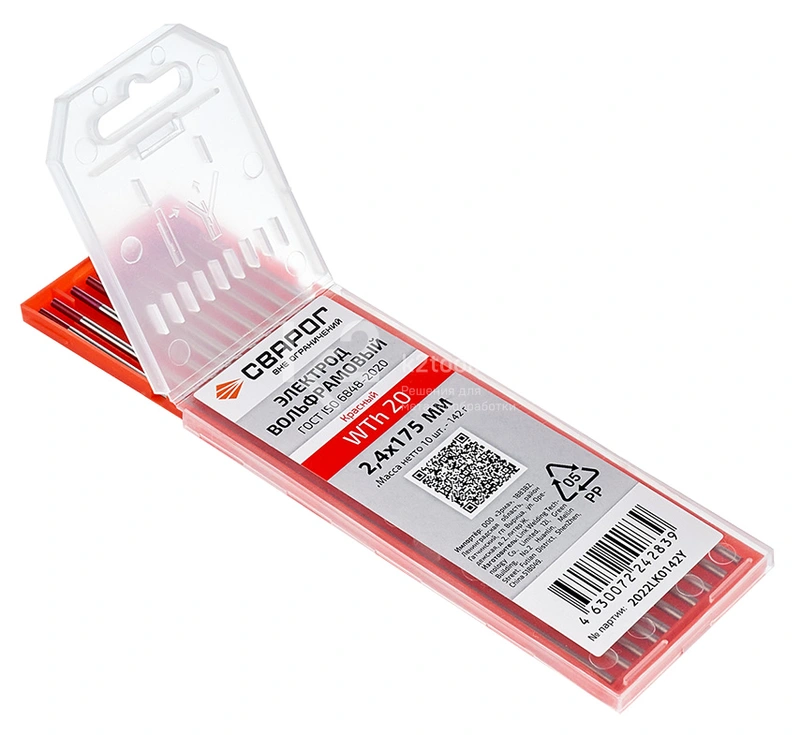 Купить вольфрамовые электроды Сварог WTh 20 2,4×175 мм по низкой цене. Бесплатная доставка по СПб, МСК и РФ в день заказа, гарантия от 1 года, официальный сервис. Поможем выбрать, звоните: 8 962 611-24-19.